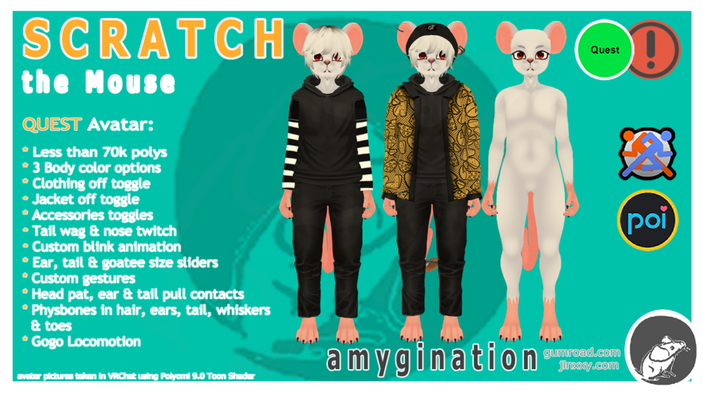 Scratch the Mouse - PC & QUEST VRChat Furry Avatar - PERSONAL LICENSE ONLY